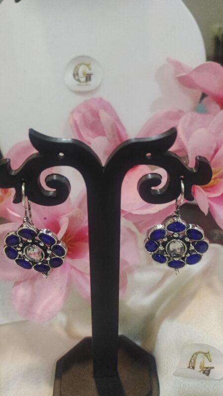 Silver-Toned Drop Earrings with Blue and Clear Accents