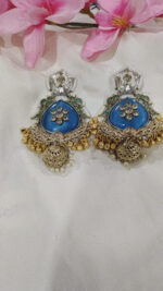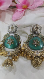 Adorn yourself with the timeless beauty of these Kundan and enamel jhumka earrings. Perfect for adding a touch of traditional grandeur and vibrant color to weddings, festive occasions, and cultural celebrations. Experience the Jalwaa Gems artistry and embrace the allure of handcrafted Indian jewelry.