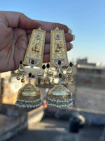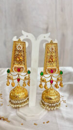 – Shape: Elongated top with bell-shaped jhumka pendant