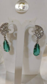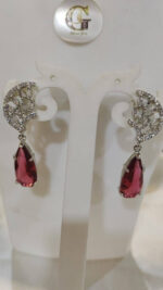 Adorn yourself with the sophisticated allure of these crystal and ruby-hued drop earrings. The intricate crystal detailing and the rich, vibrant gemstone make them a perfect accessory for adding a touch of glamour to any special occasion. Experience the Jalwaa Gems artistry and embrace the allure of uniquely designed, radiant jewelry.